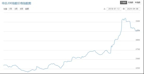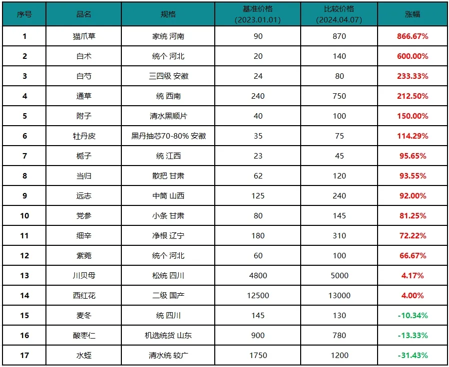 从综合200指数看:近4年以来,中药材原料出现普涨情况,综合200指数不断持续走高。综合200指数从2019年最低的2161.57点增长至2023年最高的3598点,涨幅66.5%。