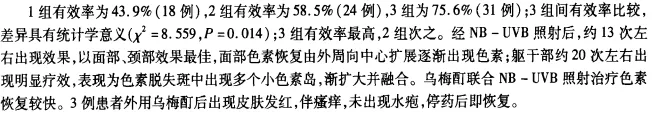 【来自论文乌梅配联合窄谱 中波紫外线治疗 白瘫风 临床研究研究结果】